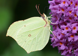 Two of the prettiest butterflies were found on the butterfly bushes this morning, a stunning female Brimstone.....